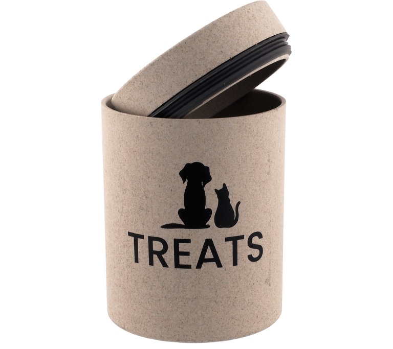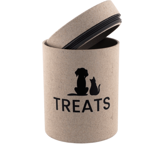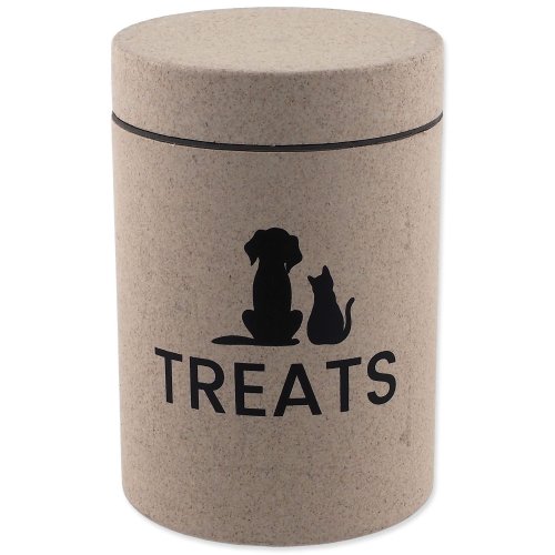 Štýlová dóza na krmivo alebo maškrty s prírodným vzhľadom . Udrží obsah čerstvý a chránený pred vlhkosťou či nečistotami a zároveň zapadne do každého interiéru . Vďaka pevnému veku je ideálny pre každodenné používanie a ekologický , odolný materiál zaručuje dlhú životnosť .