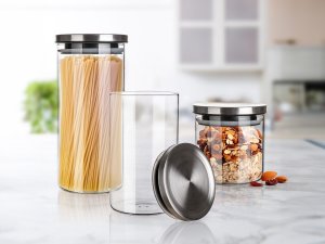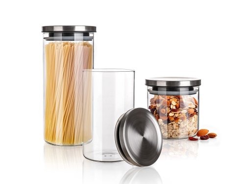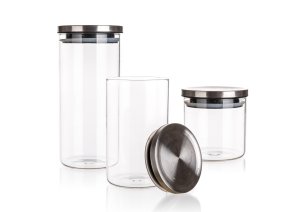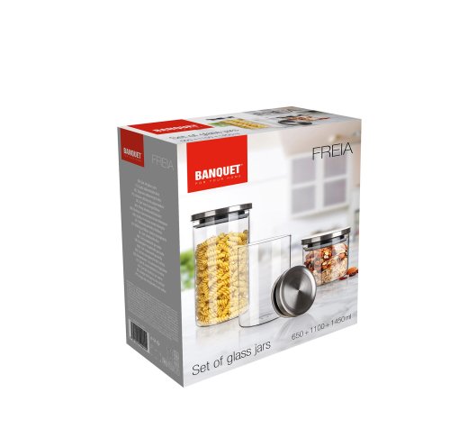 Dóza FREIA sada 3diel. (0,65 + 1,1 + 1,45 l) sklo + nerez viečko.