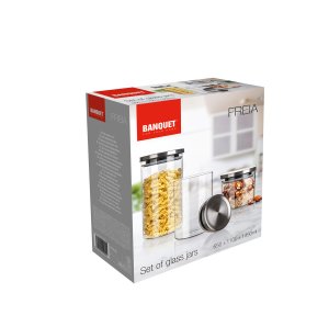 Súprava sklenených dóz FREIA s viečkom, ktoré predĺžia čerstvosť skladovaných potravín. Vďaka kvalitnému číremu sklu sú potraviny ľahko prehľadné aj bez otvárania a ponechajú si dlhšie svoju chuť a arómu.