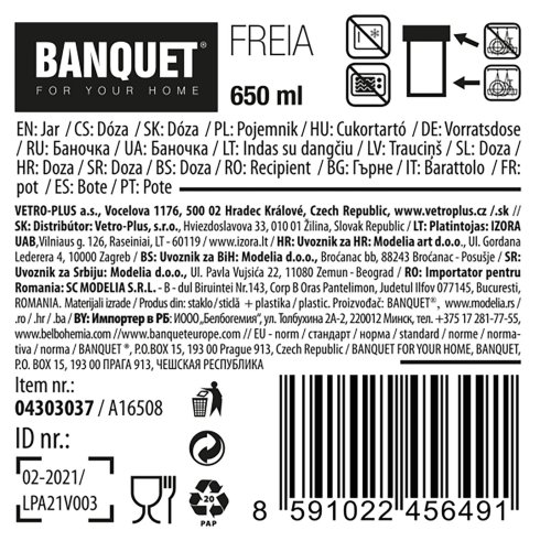 Sklenená dóza FREIA s viečkom, ktoré predĺži čerstvosť skladovaných potravín. Vďaka kvalitnému číremu sklu sú potraviny ľahko prehľadné aj bez otvárania a ponechajú si dlhšie svoju chuť a arómu.