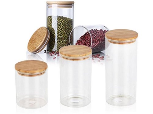 Sklenená kuchynská dóza 1,0 ls bambusovým viečkom je ideálna na uchovanie sypkých potravín.