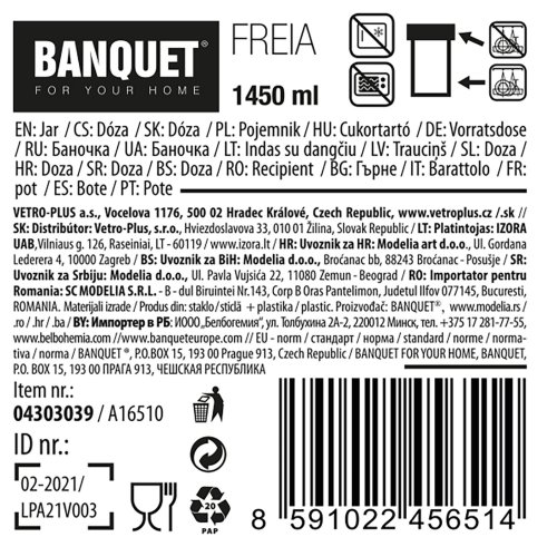 Sklenená dóza FREIA s viečkom, ktoré predĺži čerstvosť skladovaných potravín. Vďaka kvalitnému číremu sklu sú potraviny ľahko prehľadné aj bez otvárania a ponechajú si dlhšie svoju chuť a arómu.