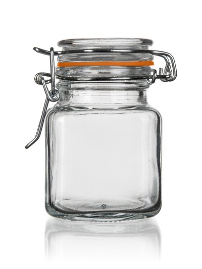 Dóza hermetická 100 ml, hranatá, sklenená, s patentným uzáverom, LINA.