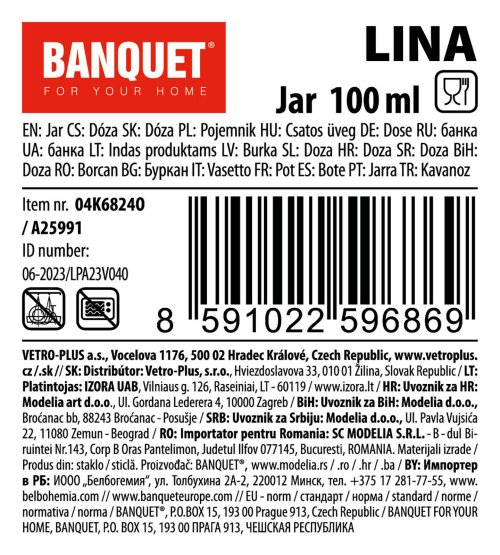Nespornou výhodou sklenenej dózy LINA je jej použiteľnosť prakticky na všetky potraviny. Sklenená dóza má tesný hermetický uzáver, je preto vhodná na uchovanie sušených či nakladaných potravín.