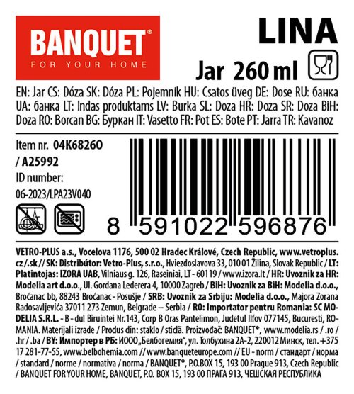 Nespornou výhodou sklenenej dózy LINA je jej použiteľnosť prakticky na všetky potraviny. Sklenená dóza má tesný hermetický uzáver, je preto vhodná na uchovanie sušených či nakladaných potravín.