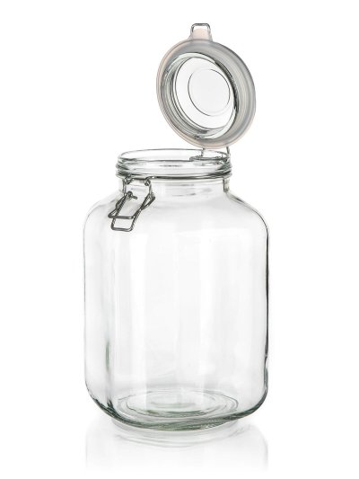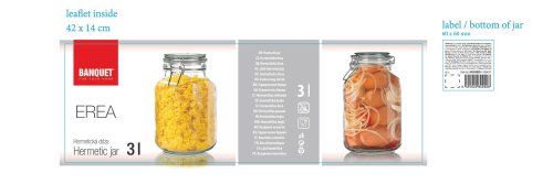 Sklenená hermetická dóza EREA 2 l so skleneným viečkom a kovovým zatváracím patentom. Viečko je osadené silikónovým tesnením. Drôtený systém uzáveru nie je vhodný do umývačky (nie je nerezový). Ideálna na uskladnenie suchých potravín - cestoviny, huby atď.