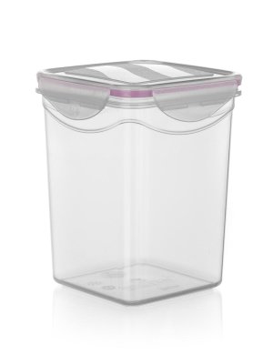 Dóza hermetická LARA, štvorcová, 1,8 l, PH. objem: 1,8 l materiál: plast Plastová dóza na potraviny LARA, s ružovým silikónovým tesnením, zaisťuje vzduchotesnosť dózy.