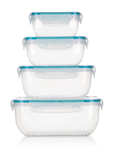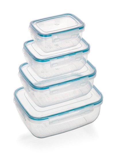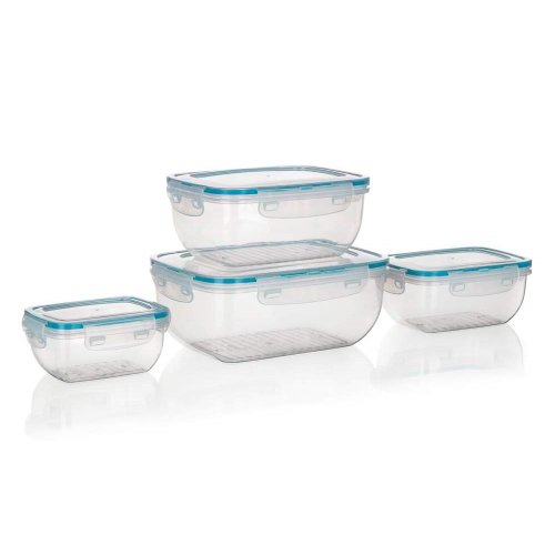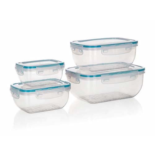 Dóza hermetická LEYA obdĺžniková sada 4diel.(0.4,0.8,1.2,2.3l) plastová, TRA/TYR