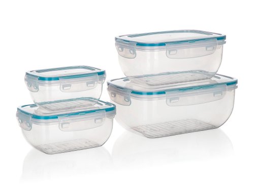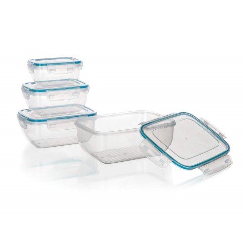 • Súprava plastových dóz na potraviny LEYA s tyrkysovým silikónovým tesnením, ktoré zaisťuje vzduchotesnosť dózy - vďaka tomu zostávajú potraviny dlho čerstvé