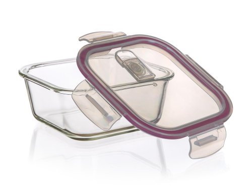 objem: 0,75 l rozmery: 15,5 x 15,5 x 6,5 cm materiál: sklo, polypropylénové viečko farba viečka: transparentné, bordové tesnenie teplotné rozpätie: min. - 12 st. C, max. + 220 st. C.