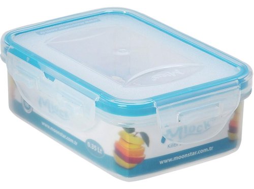 Plastová obdĺžniková dóza MLOCK na uchovanie a prenášanie potravín, je vhodná do mikrovlnnej rúry, do mrazničky a tiež do umývačky, ale iba bez veka.