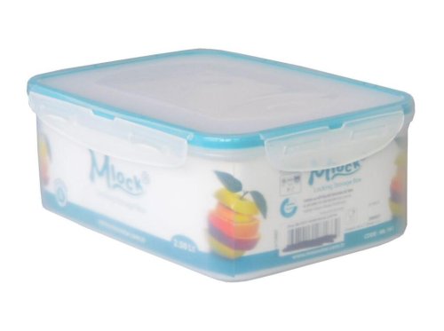 Plastová obdĺžniková dóza MLOCK je vhodná na uchovanie a prenášanie potravín. Má vzduchotesné viečko, ktoré zaisťujú štyri pohyblivé klipy. Dóza je vhodná do mikrovlnnej rúry, do mrazničky a tiež do umývačky, ale iba bez veka.