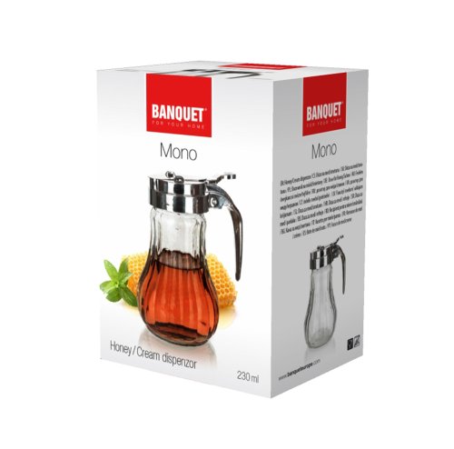 Dóza na med/smotanu MONO 230 ml, sklo/nerez. objem: 230 ml materiál: sklenené telo, veko nerez 18/0 a pochrómovaný plast PP, silikónové tesnenie Sklenená dóza MONO na med či smotanu.