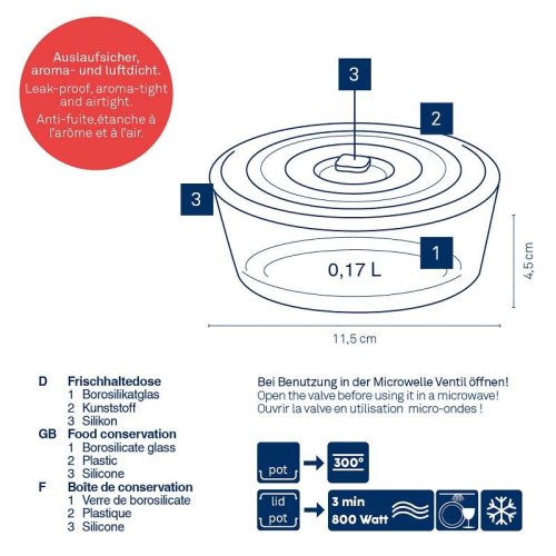 Vhodné do mikrovlnnej rúry: Dózu je možné s vekom používať v mikrovlnnej rúre pri výkone 800 W po dobu až 3 minút. Ideálne na ohrievanie jedla.