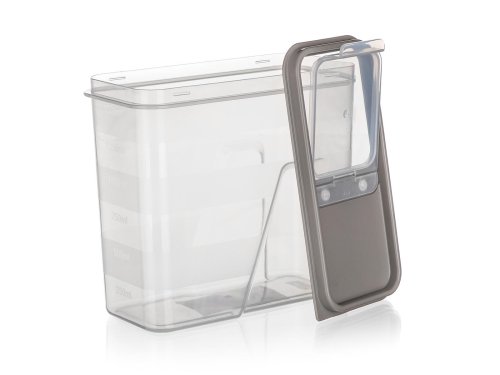 Transparentná dávkovacia plastová dóza Culinaria s viečkom v latte farbe. Dóza je praktickým pomocníkom na ukladanie cestovín, strukovín, múky a iných potravín. Vybavená meracou ryskou s odstupom 250 ml.