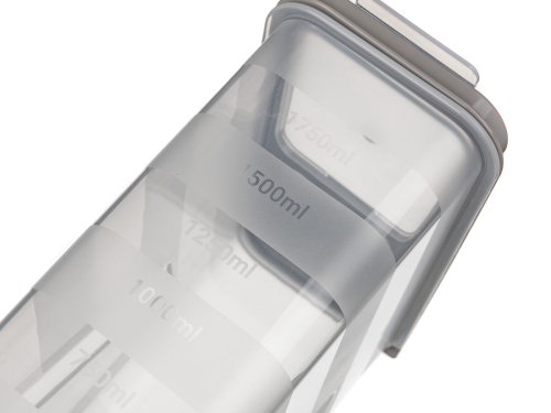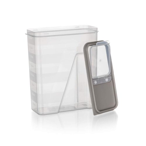 Transparentná dávkovacia plastová dóza Culinaria s viečkom v latte farbe. Dóza je praktickým pomocníkom na ukladanie cestovín, strukovín, múky a iných potravín. Vybavená meracou ryskou s odstupom 250 ml.