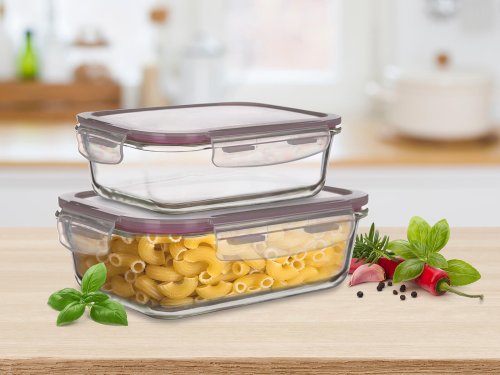 Súprava dóz LORA 550 ml a 950 ml, sú hermeticky uzatvárateľné sklenené nádoby, ktoré sú vhodné na uchovávanie potravín v čerstvom stave, zmrazovanie a ohrievanie. Dokonale sa hodí do rúry na pečenie (bez viečka) aj mikrovlnnej rúry. Vďaka špeciálnemu veku je dóza ideálna na prepravu potravín.