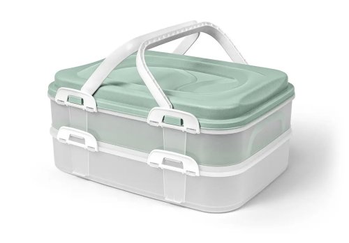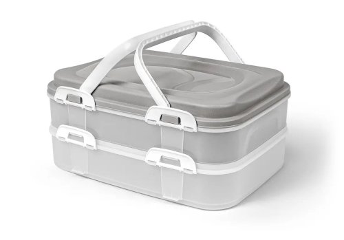 Plastová dóza PIKNIK s praktickými ušami, má 2 poschodia, vhodná na skladovanie rôznych druhov potravín.