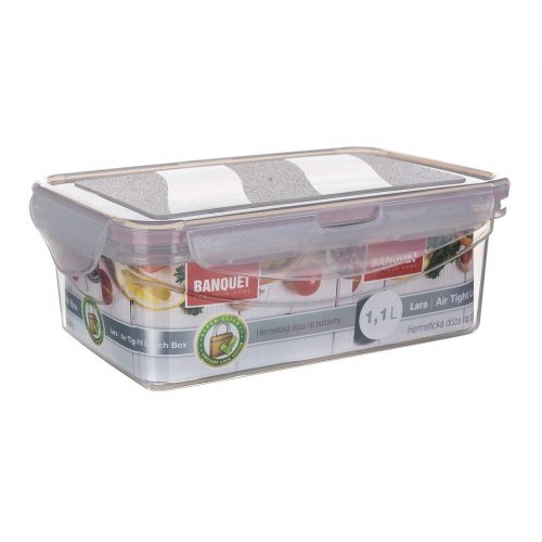 Plastová dóza na potraviny s ružovým silikónovým tesnením, ktoré zaisťuje vzduchotesnosť dózy - vďaka tomu zostávajú potraviny dlho čerstvé