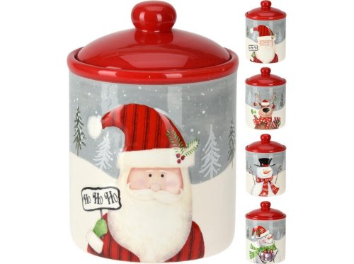 Vianočná dóza pr. 12,5 x 18 cm, s viečkom, keramická, mix dekorov.