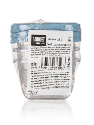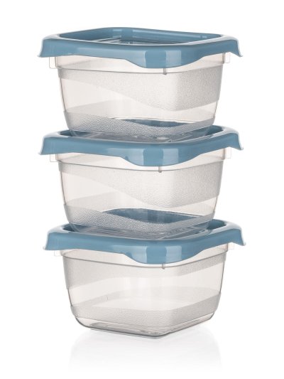 Súprava plastových dóz CULINARIA je ideálna na úschovu malých dobrôt alebo dresingov. Sada obsahuje 3 dózy s viečkami vo farbe nordic blue. Dózy sú vhodné do umývačky, mikrovlnky aj mrazničky (teplotné rozpätie -20 až +100 st.C) . Rozmery dóz: 6,5 x 6,5 x 4 cm.
