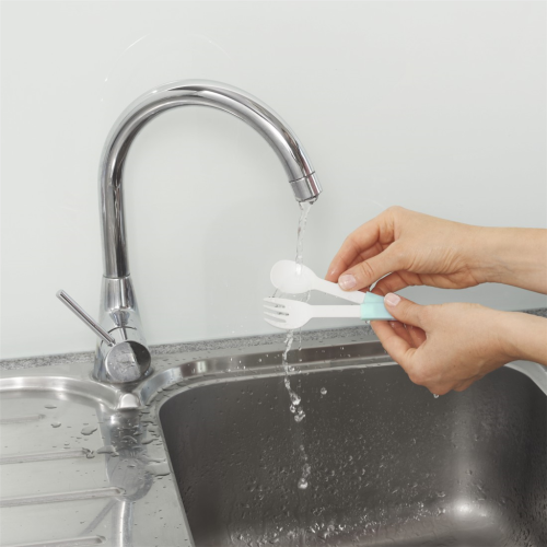 • vidlička a lyžica integrované vo viečku, všetko máte pekne pohromade