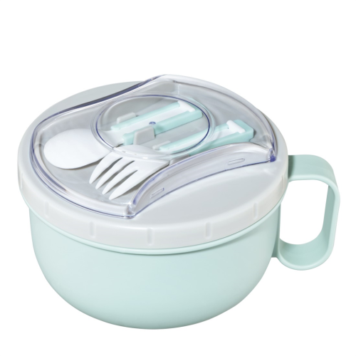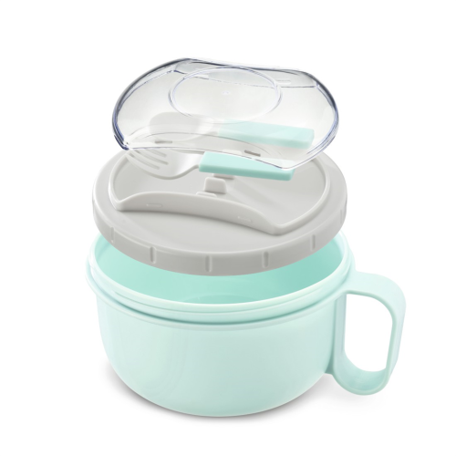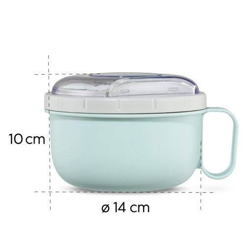Dóza vhodná na studené aj teplé jedlo, skladá sa z hlavnej nádoby, veka a priehľadného krytu, vo viečku nájdete aj vidličku a lyžicu, skrutkovací uzáver zaistí bezpečné zatvorenie dózy, farba modrá a šedá.