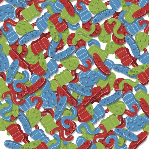 Obsah balenia: pravidlá, 54 kariet zadania, 4 pinzety, 5 Petriho misiek, 49 bacilov