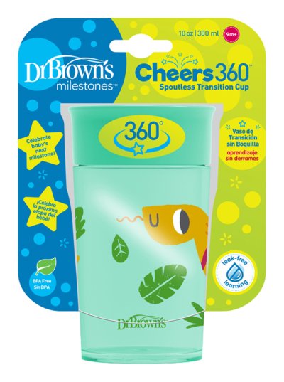 Nastal čas na zmenu z hrnčeka pre bábätko na hrnček pre väčšie dieťa? Cheers 360-stupňový výukový hrnček umožňuje piť z celého obvodu hrnčeka bez toho, aby sa z neho vylialo. Priehľadný silikónový ventil a priesvitná stena hrnčeka umožňujú vidieť do nádoby. Skosený tvar pripomína pohár pre dospelých. V hornej časti má držadlá na samostatné uchopenie a pitie.