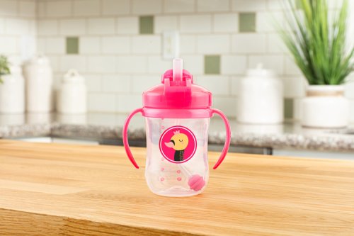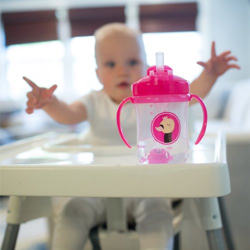 Pomáha dieťatku pri prechode od fľaše k hrnčeku. Mäkká ohybná slamka so závažím umožňuje piť pod akýmkoľvek uhlom.