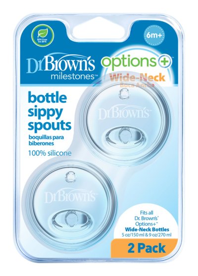 Mäkký silikónový náustok je vhodný na všetky Dr.Brown's Options+ dojčenské fľaše so širokým hrdlom 150 ml a 270 ml. Náustok na dojčenské fľaše ponúka vášmu dieťatku najjednoduchší a najlepší prechod pitia z fľaše na hrnček. Vymeňte ventilový systém a cumlík za náustok. Vyrobený je zo 100% silikónu, bez BPA. Vhodný pre deti od 6 mesiacov.