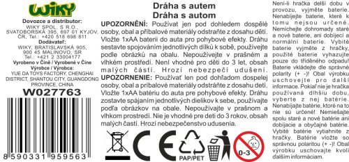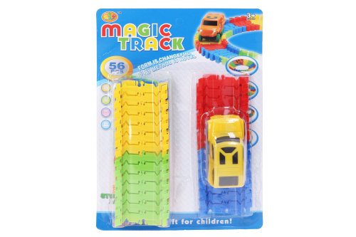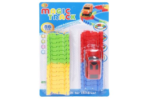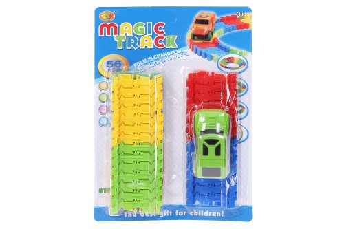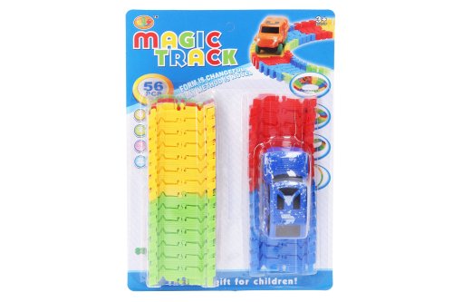 Dráha s autom. Veľkosť auta 8 cm. 1xAA batéria do auta nie je súčasťou. Žiadne svetelné a zvukové efekty. 4 varianty auta - zelené, žlté, modré, fialové.