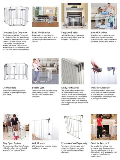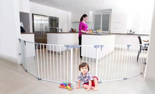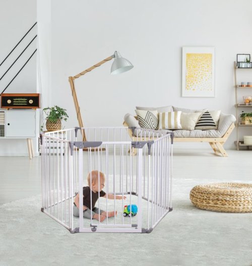 Tento mimoriadne univerzálny produkt je ideálny na použitie ako ohrádka, rozdeľovač miestností alebo dokonca ako krbová bariéra. Dodáva sa so 6 modulárnymi panelmi vrátane pohodlných priechodných brán. Pred pripevnením panelov na miesto ho môžete jednoducho nakonfigurovať tak, aby vyhovoval rozloženiu vášho domova. Kompaktný dizajn je možné zložiť pre ľahké skladovanie a prenosnosť.