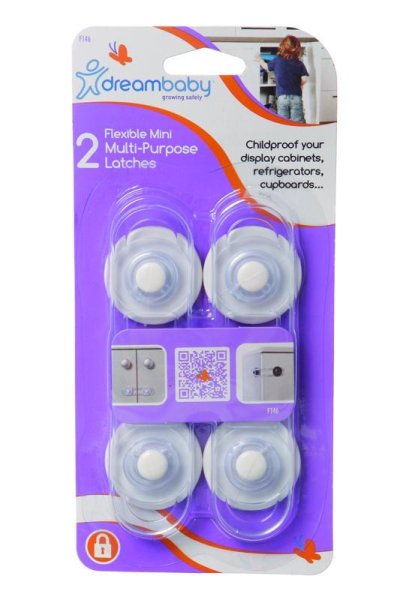 Mini viacúčelové uzávery Dreambaby® je možné aplikovať na skrinky a pomáhajú chrániť vaše deti pred ublížením v ktorejkoľvek miestnosti v dome vrátane kuchyne, kúpeľne, práčovne, garáže a obývacích priestorov.