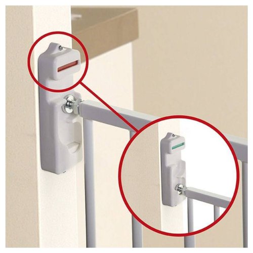Vďaka inovatívnemu zámku puzzle a ovládaniu jednou rukou jednoducho zdvihnite bránu a sledujte ju cez cestu puzzle, aby ste ju odomkli. Táto brána namontovaná na hardvér sa zmestí do otvorov medzi 76-134,5 cm, je 76 cm vysoká a brána sa bude otvárať v oboch smeroch pre ľahký priechod bez nebezpečenstva zakopnutia. Pomocou otočného alebo odnímateľného jazýčka je možné bránu obmedziť na otáčanie iba jedným smerom, takže je ideálna pre použitie na vrchole schodiska. Jedinečný indikátor EZY-Check Indicator vám pomáha zaistiť pokoj tým, že jasne ukazuje, či je brána zamknutá alebo odomknutá. Pri odomknutí bude indikátor stavu svietiť červeno a pri správnom uzamknutí a zaistení zozelená. Brány Dreambaby dodajú vášmu domu zabezpečenému pred deťmi štýl aj bezpečnosť.