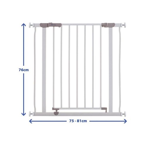 Kovová bezpečnostná zábrana Dreambaby® Ava robí váš domov bezpečnejším miestom pre vaše dieťa. Je vyrobená tak, aby sa do nej zmestili otvory od 75 do 81 cm. Vhodná na dvere, chodby a schody. Táto zábrana sa môže rozšíriť až na 90 cm pridaním jedného predĺženia 9 cm alebo až 99 cm pridaním rozšírenia 2 x 9 cm. Rozšírenia sú voliteľné a predávajú sa zvlášť. Zábrana nie je len pre malé deti, je ideálna aj pre majiteľov domácich miláčikov! Táto zábrana Ava je navrhnutá tak, aby zostala otvorená v oboch smeroch, a tiež sa ľahko inštaluje bez potreby skrutiek alebo vŕtania. Jednoduché otváranie a zatváranie jednou rukou.