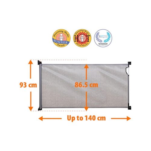 Táto zaťahovacia zábrana sa hodí pre otvory až do 140 cm a poskytuje praktickú bariéru pre všetky druhy rôznych šírok a keď sa nepoužíva, múdro sa zasunie späť. Jednoduché uvoľnenie a vypnutie spony vám umožní presunúť ho z jedného miesta na druhé, s 2 sadami montážnych konzol. Táto zábrana je vhodná na použitie v interiéri aj exteriéri. Je pevná a robustná. Tiež nepredstavuje nebezpečenstvo zakopnutia, takže je ideálny pre použitie na schodoch. Pokiaľ sa používa v exteriéri, odporúčame ju počas nepriaznivého počasia preniesť dovnútra.