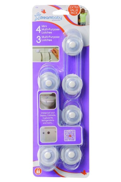 Viacúčelové zámky Dreambaby sú vhodné na lesklý a laminovaný nábytok, sklenené a zrkadlové skrinky, lakované drevo, kovové skrinky. Balenie obsahuje 3 multi viacúčelové a 4 mini viacúčelové zámky – efektívny spôsob, ako zaistiť svoj domov a bezpečnosť detí.