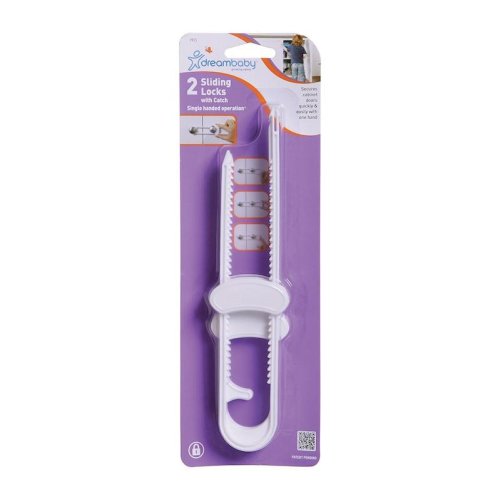 Posuvné zámky Dreambaby © so západkou sú najrýchlejším a najbezpečnejším spôsobom uzamknutia dverí skriniek a pomáhajú ochrániť malé deti pred tým, čo je vo vnútri. Sú vhodné pre kľučky v tvare D, nevyžadujú žiadnu inštaláciu a je možné ich otvoriť jednoduchým jednoručným manévrom. Jednoducho zatlačte dole a pevne zasuňte zámok proti rukovätiam.