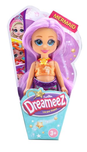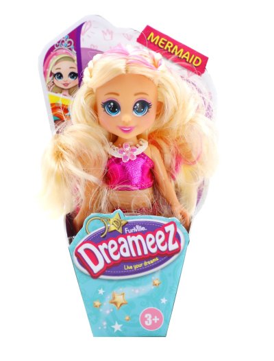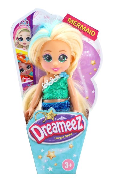 Dreameez mini morská panna v kornútku je roztomilá bábika o veľkosti cca 12 cm, oblečená v nádhernom morskom oblečení. Má dlhé vlásky, ktoré si deti môžu česať a upravovať, čo prináša množstvo zábavy pri vytváraní rôznych účesov a rozprávkových scén.