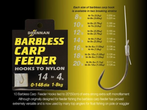 Náväzce Barbless Carp Feeder sú ideálnou voľbou pre lov kaprov na feeder. S dĺžkou 50 cm a použitím extra jemného nylonového monofilu poskytujú vysokú citlivosť a zároveň pevnosť potrebnú na zdolávanie rýb.
