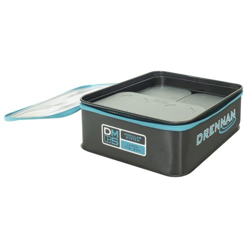 DMS Large Visi Box - 10 l Rozmery: 34 cm x 27 cm x 11 cm Large Visi Box je vyrobený z odolného, vodotesného a ľahko čistiteľného zváraného EVA materiálu. Priehľadné veko umožňuje rýchly prehľad o obsahu. Je ideálny na uloženie kŕmidiel, závaží, cievok vlasca alebo drobného náčinia. Rozmery Large Visi Boxu sú navrhnuté tak, aby sa perfektne hodili do DMS Carryalls.