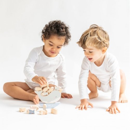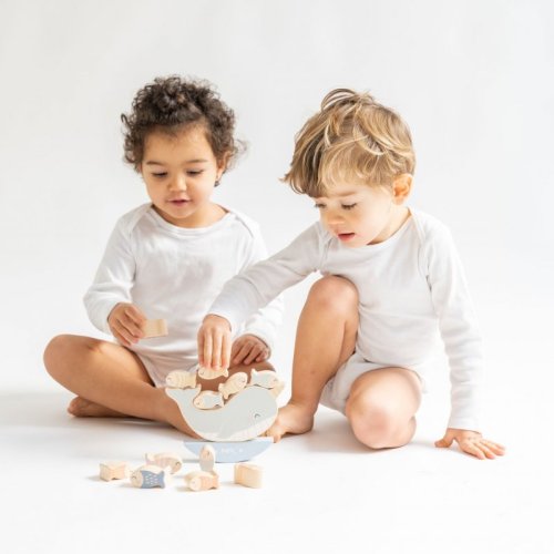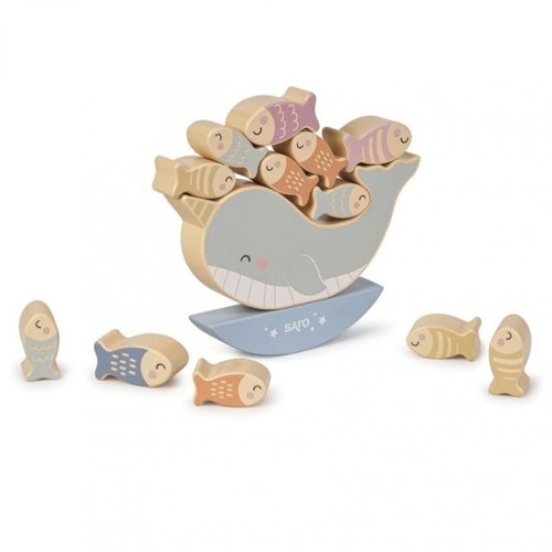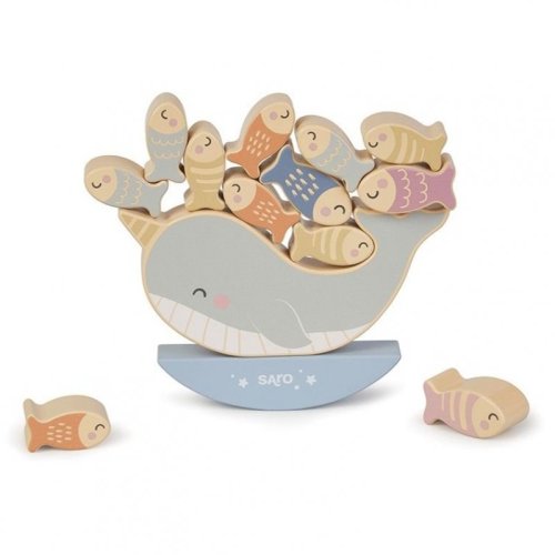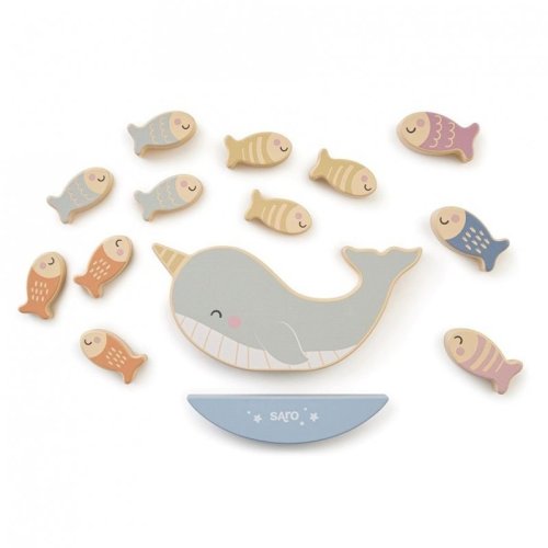 • zábava spočíva v umiestnení jednotlivých farebných rybičiek na balančnú podložku v podobe veľrybky