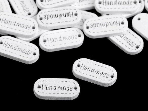 Drevená ceduľka / ozdoba Handmade 11x23 mm - biela (100 ks)