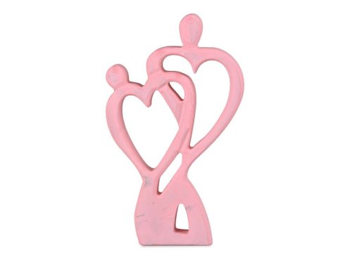 Krásna dekorácia dvoch drevených sŕdc v ružovej farbe, ideálna pre svadobné dekorácie alebo romantické darčeky. Jej rozmery sú 120 x 20 x 200 mm.