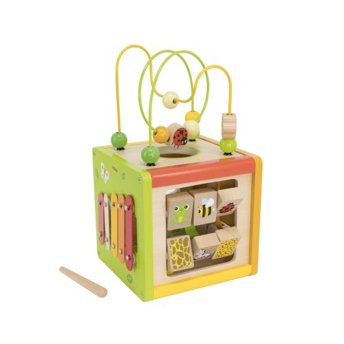 Vzdelávacia kocka s priestorovým labyrintom od firmy Viga je ideálny darček, ktorý poteší každé dieťa. Táto multifunkčná hračka poskytne vášmu dieťaťu hodiny zábavy. Každá strana kocky ponúka inú aktivitu a dieťa si samo vyberá, s čím sa chce práve hrať.