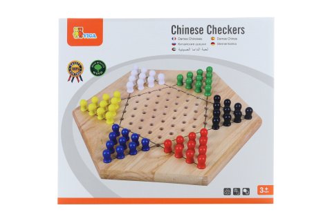Hra Čínska dáma. Čínska dáma je strategická dosková hra určená pre 2 až 6 hráčov. Ide o variant hry halma. Cieľom hry je premiestniť všetky svoje figúrky do protiľahlého cípu hviezdy. Každý hráč má svoju sadu - farbu figúrok. Rozmery balenia 33,5x29x4,5 cm. Rozmer dosky v hre 31x28 cm. Vek 3+