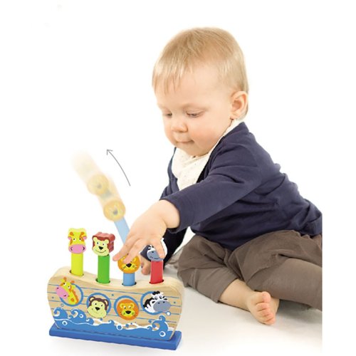 Drevená hra Noemova archa od spoločnosti Viga sú hračkou, ktorú si zamiluje každé dieťa. Úlohou dieťaťa je "katapultovať" zvieratká stlačením hlavičiek zvieratiek, ktoré sú umiestnené na farebnom drevenom podstavci. Postavičky žirafy, opice, leva a zebry sa na batoľa usmievajú a zároveň sa dieťa môže naučiť rozpoznať, ktoré zvieratko bolo umiestnené na drevenej hlavičke.
