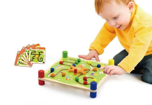 "Bludisko" je manipulačná hra v podobe robustnej drevenej dosky so 4 labyrintmi a otočným ozubeným kolieskom uprostred a 12 štipcami v 4 farbách. Hra spočíva v posúvaní farebných kolíčkov po doske bludiska tak, aby boli všetky umiestnené podľa vzoru uvedeného na 6 vzorových kartách.