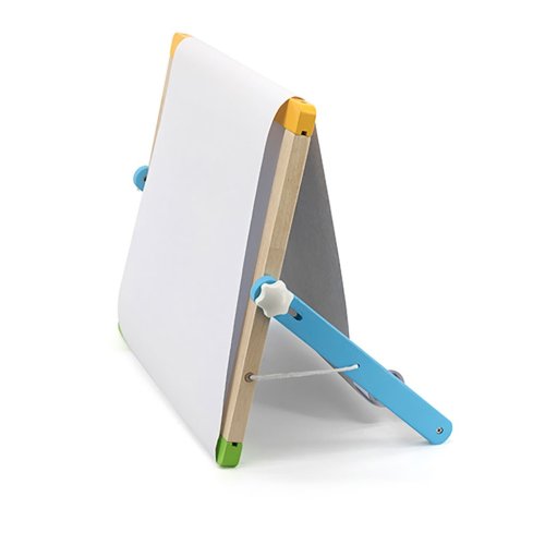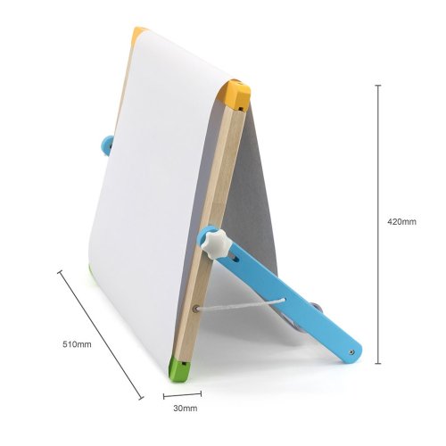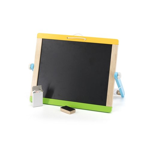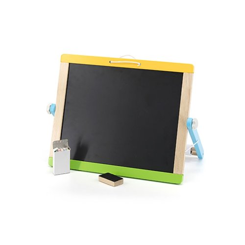 Obojstranná tabuľa s príslušenstvom je multifunkčný výrobok, ktorý pomôže deťom naučiť sa počítať, maľovať a písať. Na jednej strane je magnetická tabuľa, na ktorú je možné pomocou vzorových kartičiek alebo vlastnej fantázie pripevniť priložených 26 magnetov s písmenami, 29 magnetov s geometrickými obrazcami a 10 čísel. Okrem toho je možné na tabuľu písať fixkou. Na druhej strane je tabuľa s kriedou a hubkou. Na zadnej strane tabule je tiež rolka s listom papiera, ktorý je možné na tabuli rozvinúť.